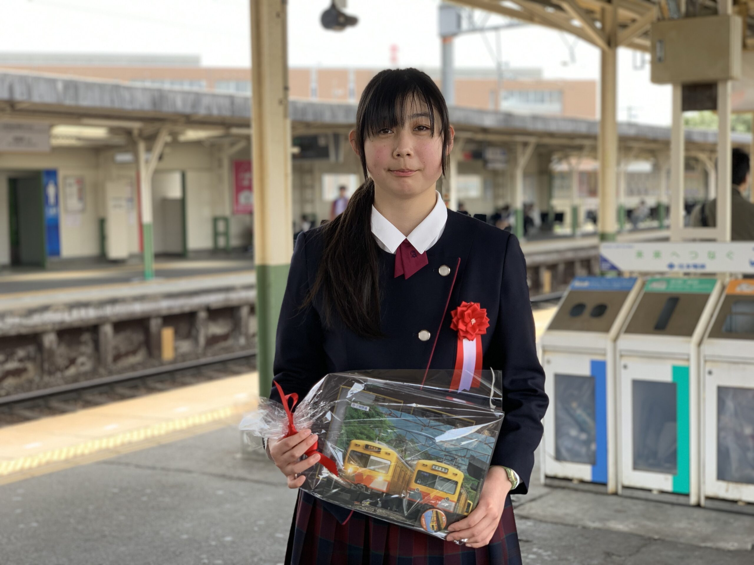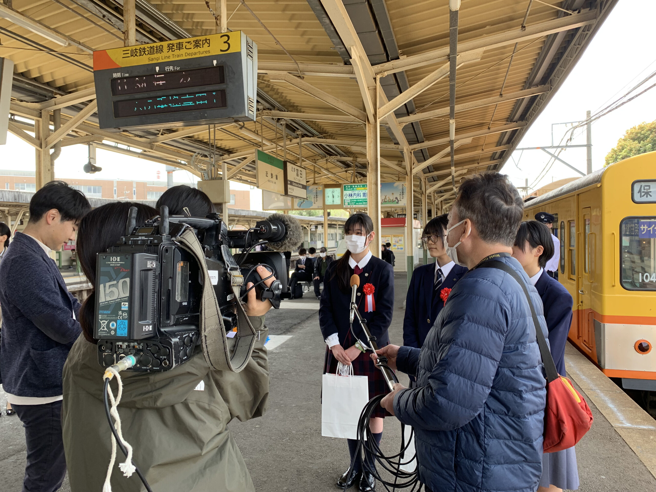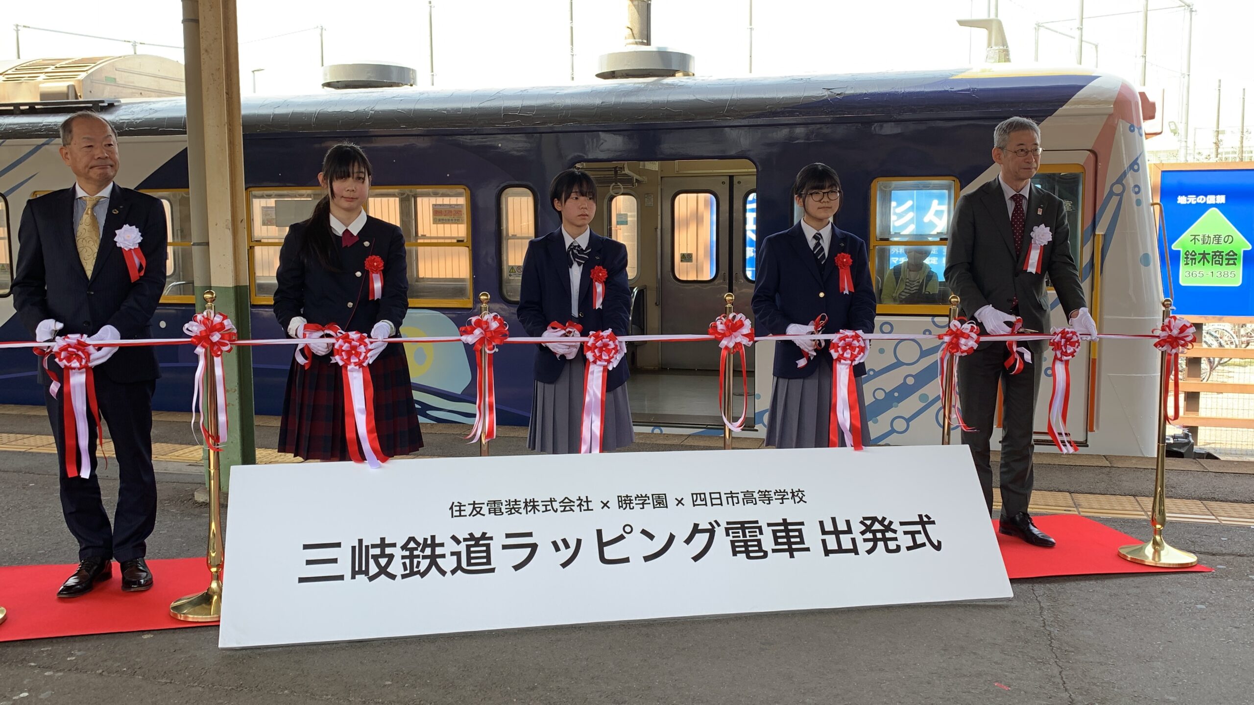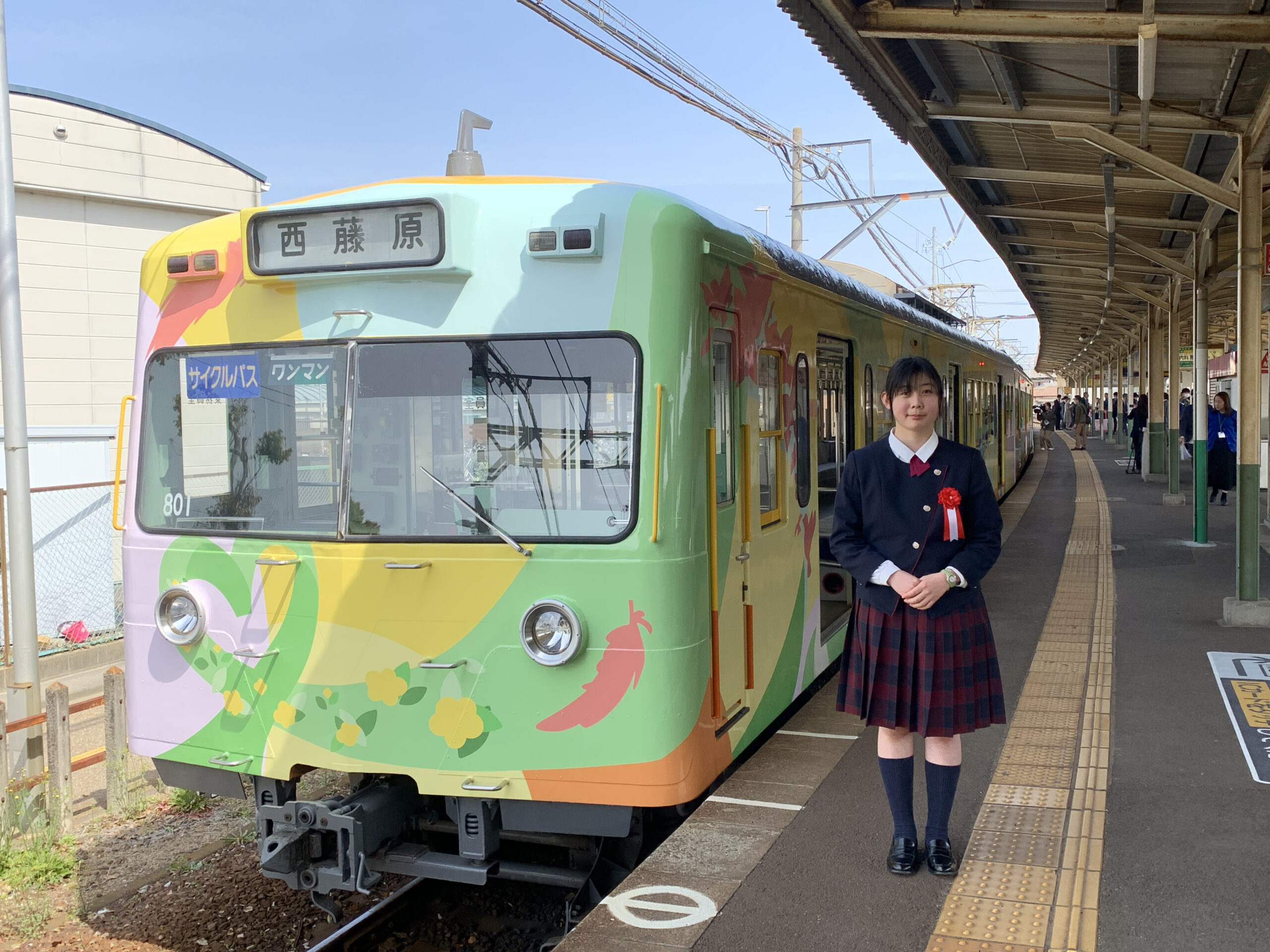 4月2日(火)、近鉄富田駅三岐鉄道三岐線ホームにて三岐鉄道ラッピング電車出発式があり、野田いぶきさんが出発式に参加しました。