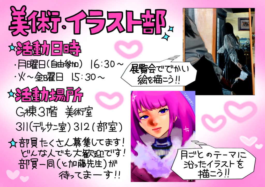 美術・イラスト部をよろしくお願いいたします。