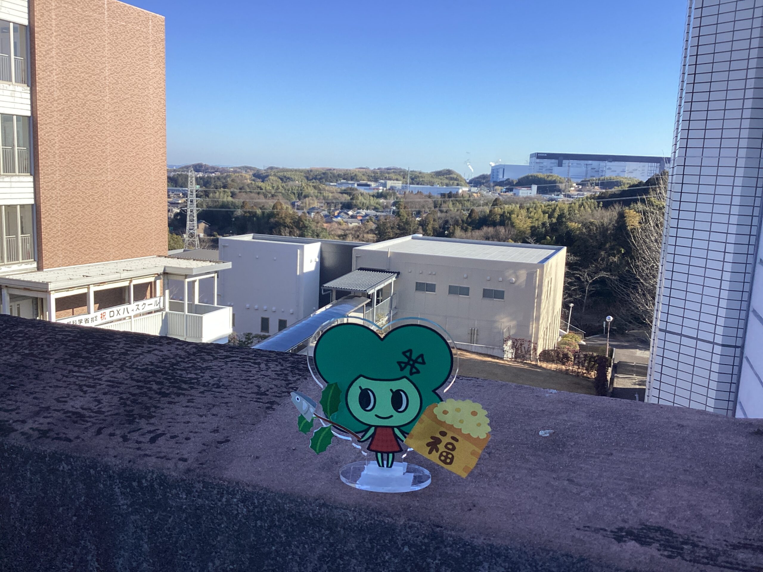 我が学園マスコットのアルバちゃんが屋上からみんなの息災を祈りました。