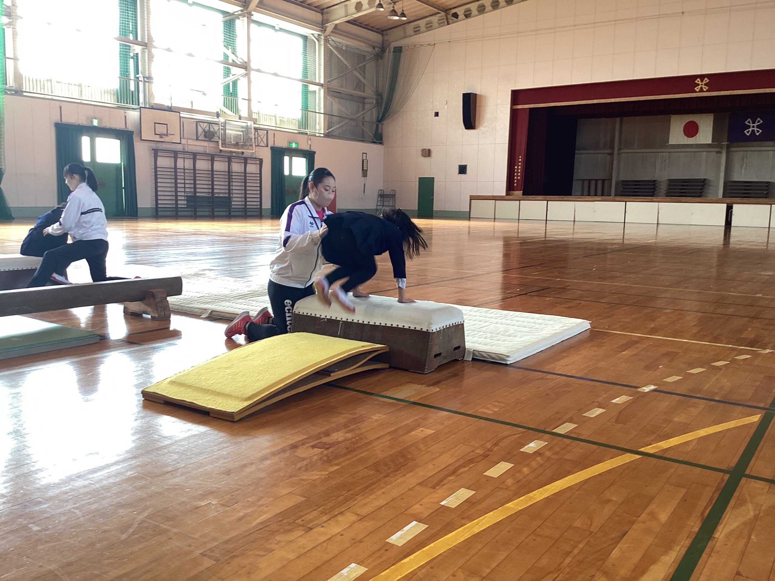 体育館では既に自由登校になっている3年生たちが運動のサポートのために参加してくれました。