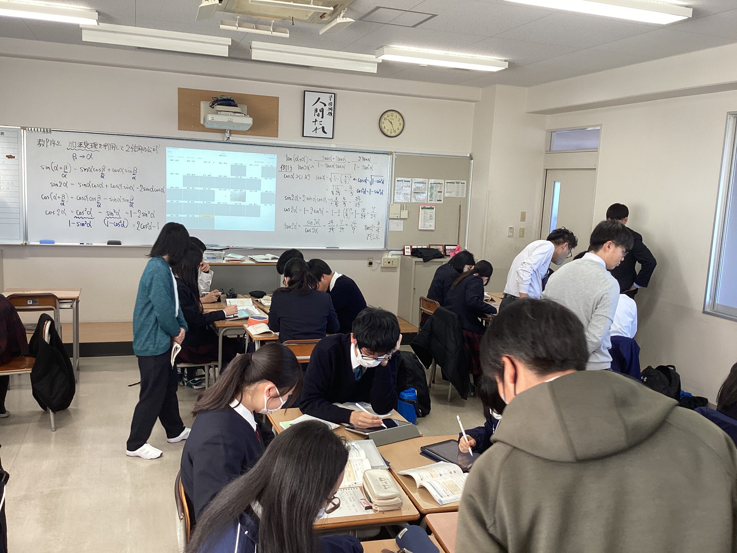 校内では研究授業が行われています。生徒たちは緊張するかと思いきや、意外と(?)楽しげな様子。