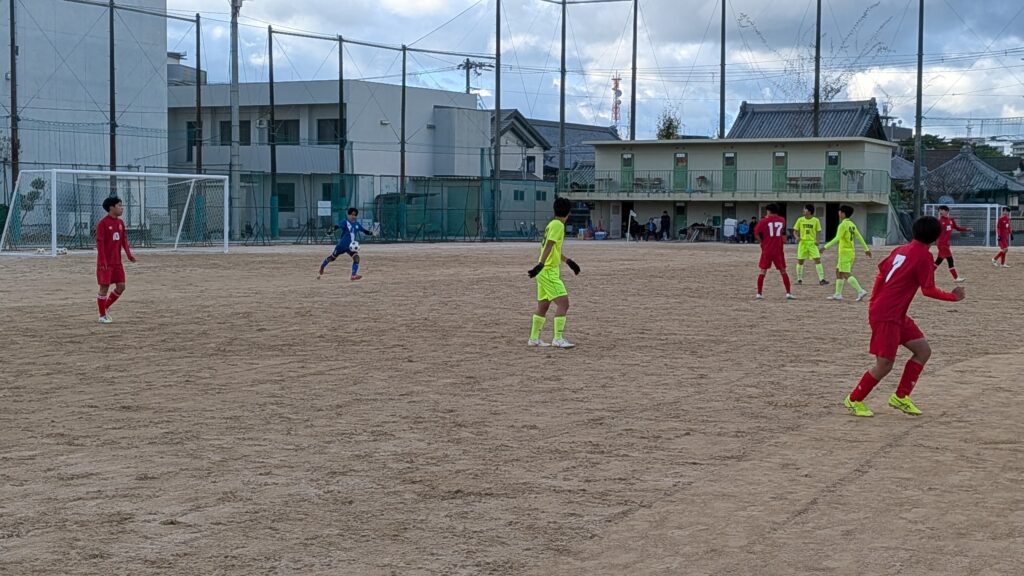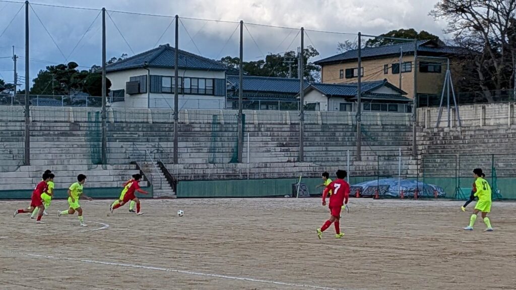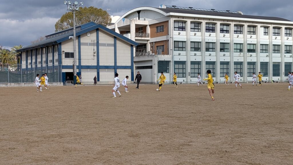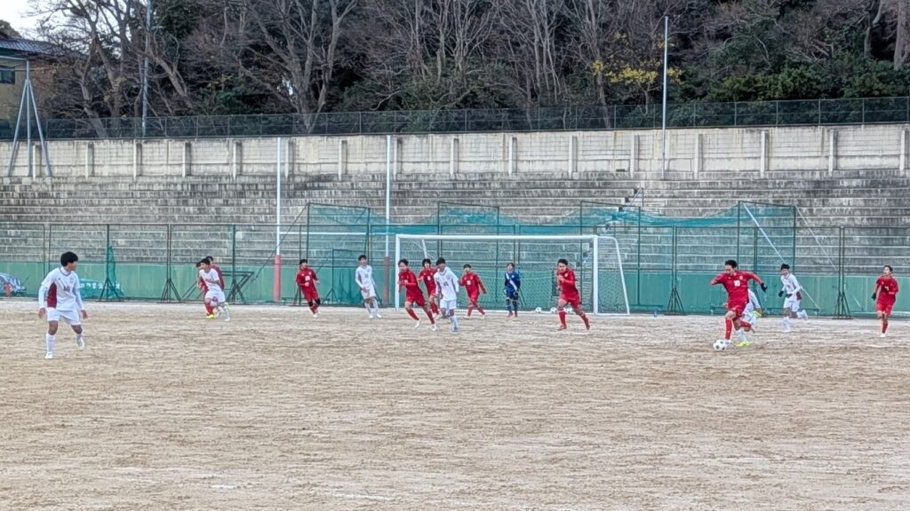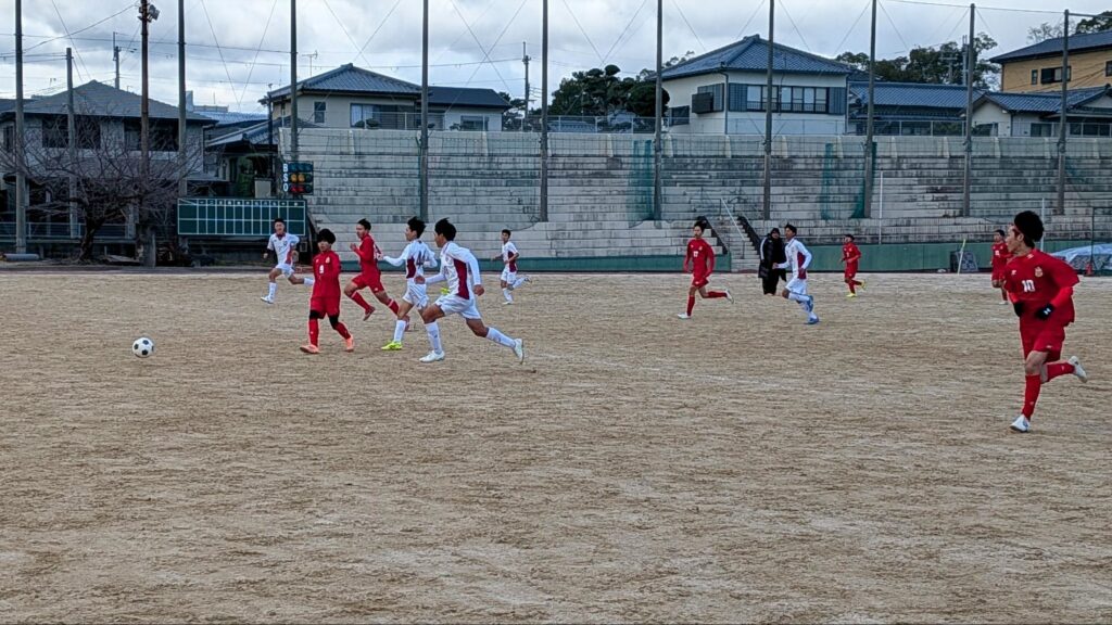 寒空の下、しかも強風の中、選手たちは最後までボールを追いかけていました。