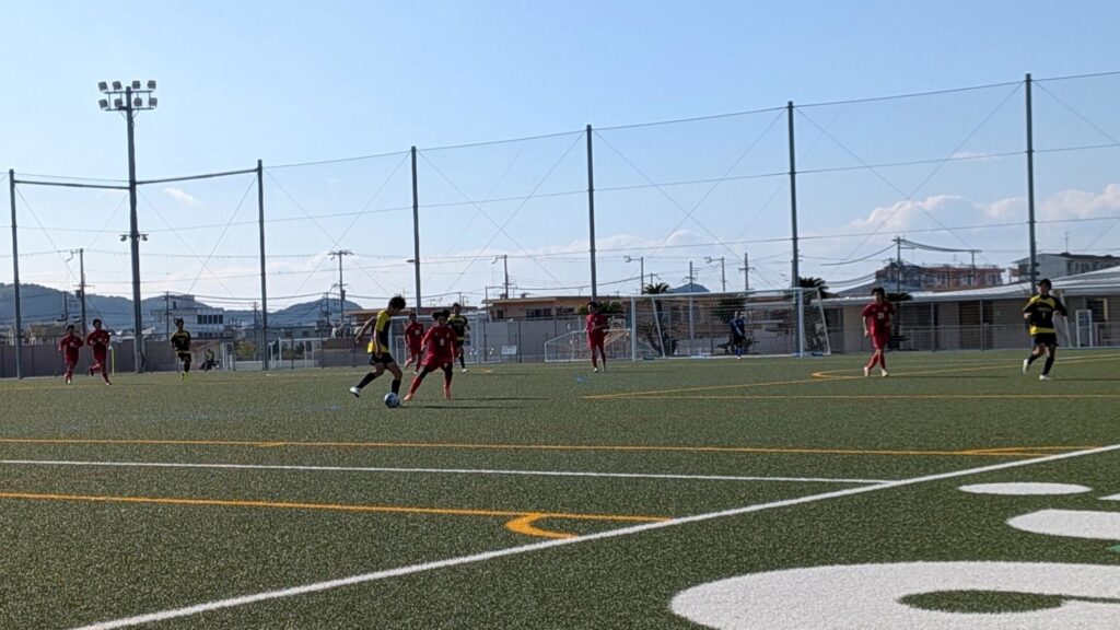 人工芝の素晴らしいピッチで、小春日和の好天候の中、遠征3日目の蓄積した疲労がピークをむかえながらも、選手たちは最後まで諦めずに課題克服に取り組んでいました。